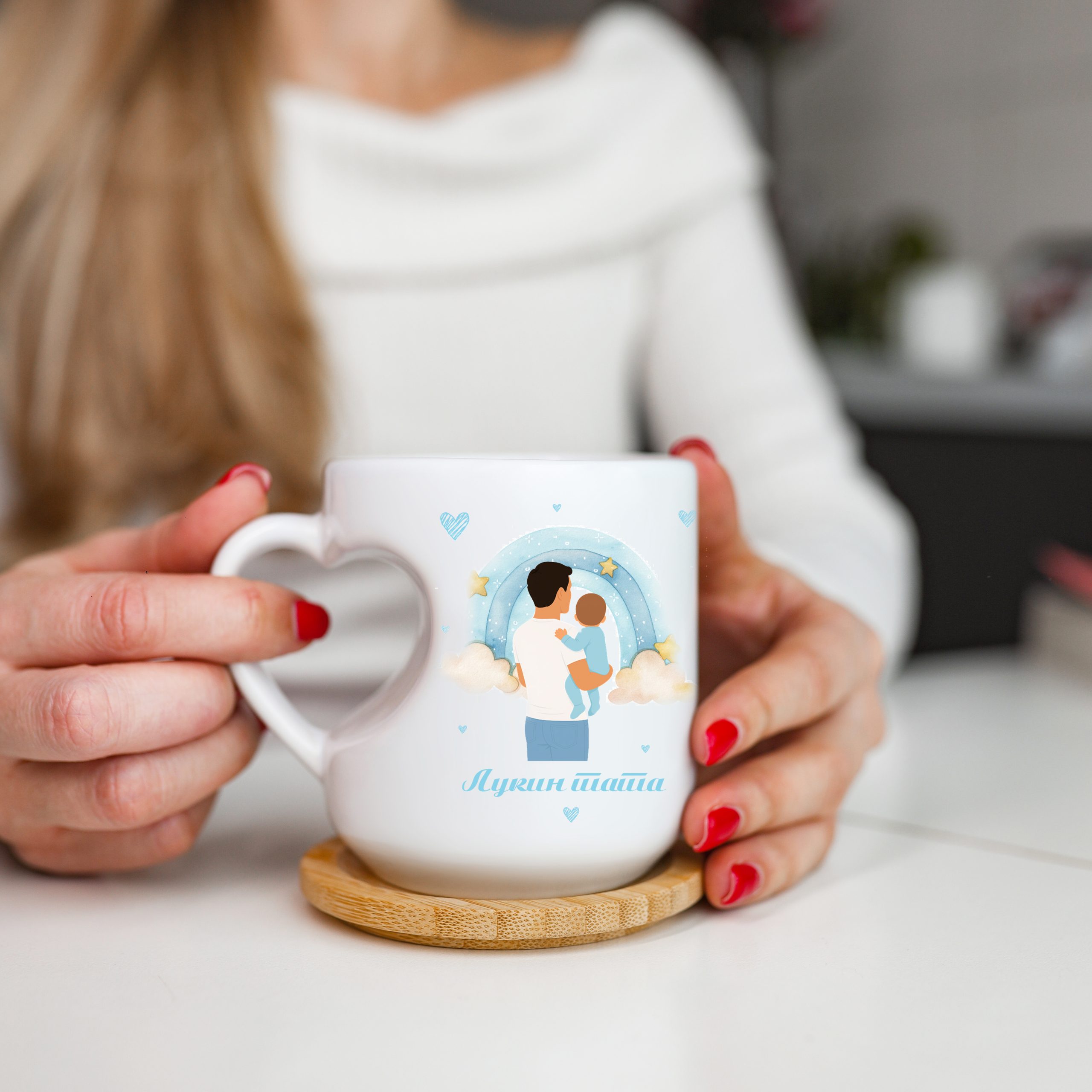 Ručka u obliku srca i topli dizajn čine je savršenim poklonom za svakog tatu.